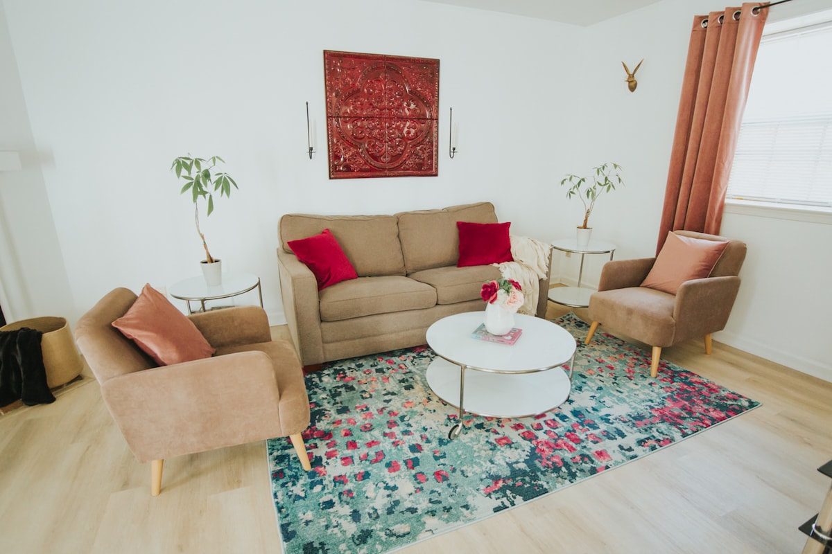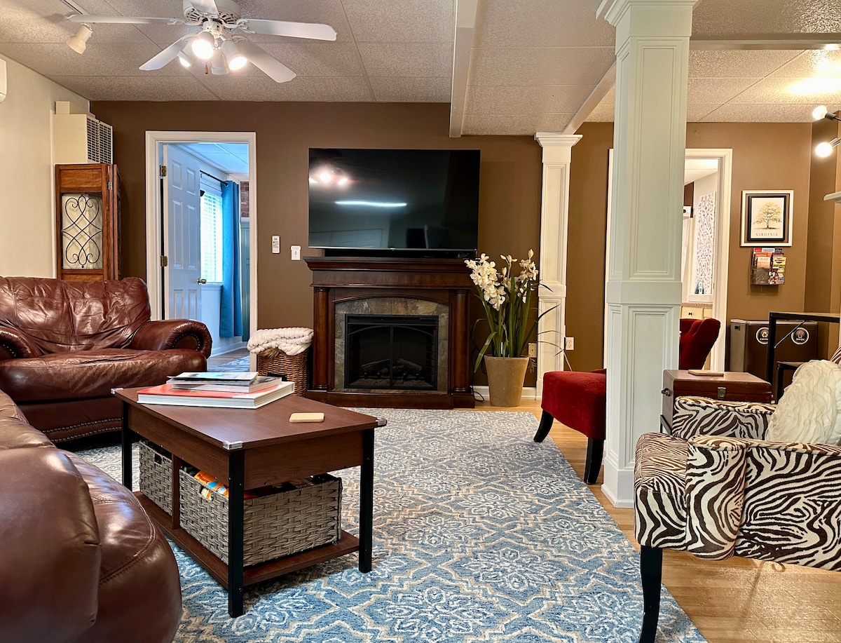 Căn hộ tầng hầm của chúng tôi được trang bị để đảm bảo thời gian lưu trú thú vị tại C'ville. Cách trung tâm thành phố chưa đầy 2 dặm và cách sân UVA 2,5 dặm. Căn hộ này nằm ở giữa tất cả những gì C'vville cung cấp. Giường queen làm cho nó lý tưởng cho 2 người ngủ thoải mái. LƯU Ý - Không có cửa sổ trong phòng ngủ. Hầu hết khách đều thích điều này và nói rằng họ có được giấc ngủ ngon nhất từ trước đến nay. Wifi, mặt bàn đá granit, thiết bị nhà bếp hiện đại, TV LED THÔNG MINH, máy pha cà phê và nhiều tiện nghi khác.