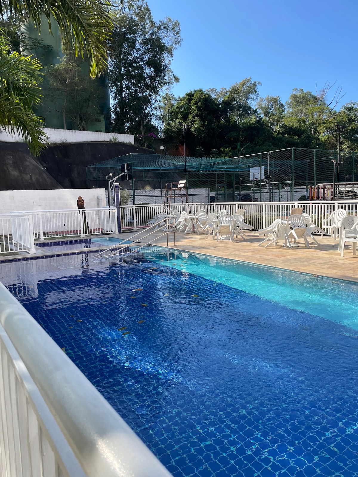 Suite charmosa, independente e com bela vista para a montanha. Ambiente tranquilo e familiar! Oferece: 1 cama King; home office; Frigobar; Ar condicionado; Banheiro privativo, Secador de cabelo; smart TV; armário e varanda com vista livre. Condomínio com portaria 24h e estacionamento gratuito. Próximo à Barra Olímpica, Rio Centro, Praia do Recreio e da Barra da Tijuca. Horário do check in: a partir das 15h. Check out: até meio dia (12h). Obs: Está incluído roupa de cama e banho