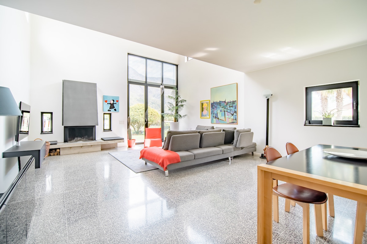 Il Rustico Claro Dieser moderne Rustico mit Panorama-Terrasse befindet sich in Claro-Bellinzona. Die Lage ist absolut ruhig und sonnig. Das Ferienhaus bietet einen einzigartigen Blick auf den umliegenden Bergen. Die Umgebung ist ideal für Naturliebhaber, Tierfreunde und Wanderer. Ein Ort für Ruhe und Entspannung! Voll ausgestattete Küche, Cheminée, interner Spielbereich für Kinder, Grill, 600m2 grossen Garten mit Palmen stehen den Gästen zur Verfügung. Haustiere sind herzlich willkommen!