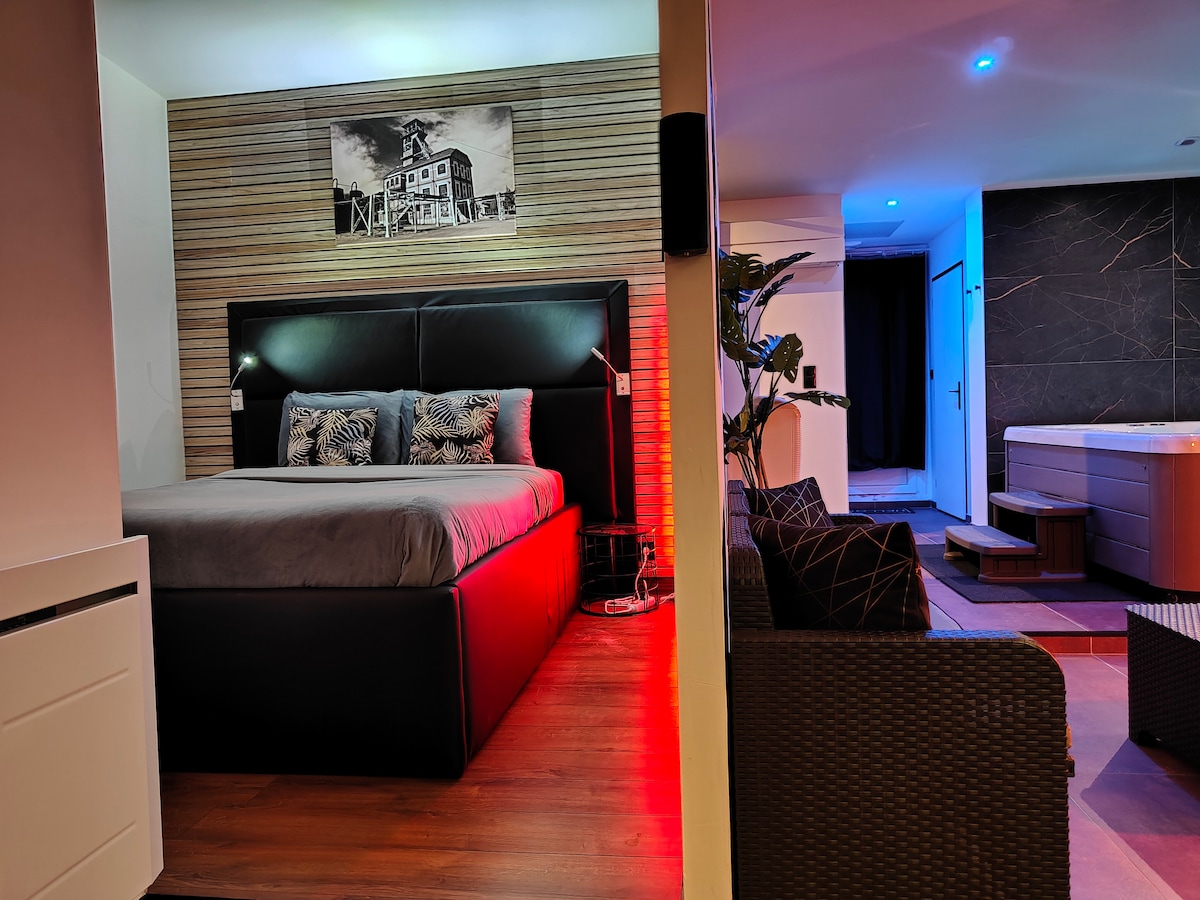 Khám phá sự thoải mái tối đa trong căn hộ 80 m2 của chúng tôi, nằm giữa Louvre Lens và Stade de Lens. Tận hưởng bể sục 2 chỗ với 95 vòi phun, TV OLED 4K 165cm. Bếp được trang bị. Phòng tắm có vòi sen kiểu Ý, bồn cầu treo, gương LED chống sương mù và máy sấy khăn. Phòng có giường lớn 180x200cm, lưới treo rộng 10 m2 với vải bạt 260cm ghế sofa, bàn cà phê và máy pha cà phê Nespresso, máy chiếu 4K HDR UHD