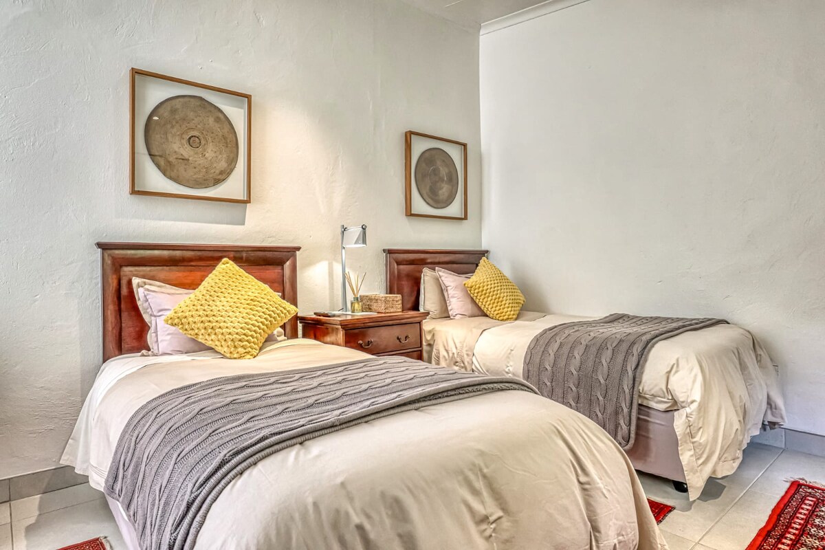 Thoát khỏi căn hộ 2 phòng ngủ thanh bình của chúng tôi (phòng tắm khép kín chính của BR), nơi sự yên tĩnh đáp ứng năng suất. Phòng ngủ thứ 3 đã được chuyển đổi chu đáo thành một không gian văn phòng hoàn toàn dành riêng, hoàn hảo cho công việc từ xa. Một chiếc ghế sofa ngủ thoải mái trong văn phòng cho vị khách thứ 5. Bước ra ngoài và đắm mình trong ốc đảo vườn tươi tốt của chúng tôi. Cỏ hình ảnh, được cắt tỉa cẩn thận mời gọi sự thư giãn, trong khi khu vực ngồi ấm cúng với hố đốt lửa và BBQ/braai hứa hẹn những buổi tối đáng nhớ Khu phố yên tĩnh, yên bình và an toàn