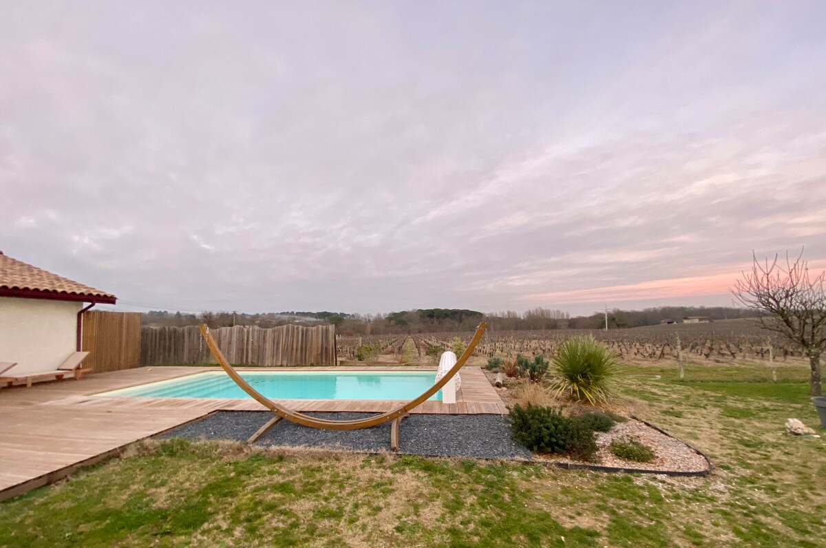 Chào mừng bạn đến với vùng Tuscany Bordeaux nhỏ bé và những sườn đồi được bao phủ bởi những cây nho hàng trăm năm tuổi. Sự bình yên và thư giãn sẽ có mặt tại cuộc hẹn, kèm theo khung cảnh tuyệt đẹp của vùng nông thôn và hoàng hôn. Chỗ ở có tất cả các tiện nghi cũng như điều hòa không khí! Chỉ cách Libourne 6 phút, cách Saint-Emilion 25 phút, cách Bordeaux 35 phút và cách bãi biển 1 giờ, vị trí lý tưởng để bạn khám phá vùng rượu vang tuyệt vời của chúng tôi.