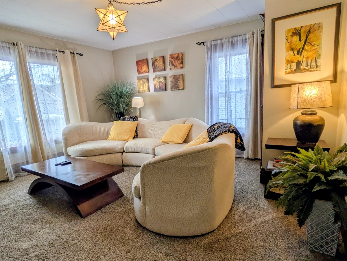 Nhà nghỉ thôn dã yên bình và nằm ở trung tâm. Ngôi nhà này là một căn hộ triplex tầng chính được trang bị nội thất đẹp chỉ cách Mayo Clinic 5 phút. Trạm xe buýt tại chỗ ở và nhiều nhà hàng cách đó 3 phút. Căn hộ 2 phòng ngủ, 1 phòng tắm này có mọi thứ bạn có thể cần để phục hồi sau phẫu thuật, để cảm thấy như đang ở nhà trong khi tìm kiếm phương pháp điều trị hoặc tận hưởng Rochester xinh đẹp. Ngôi nhà thân thiện với trẻ em với một bộ sưu tập đồ chơi và sách đẹp để giữ cho những đứa trẻ bận rộn. Thú cưng được chào đón với mức phí 50 USD/thú cưng/tháng.