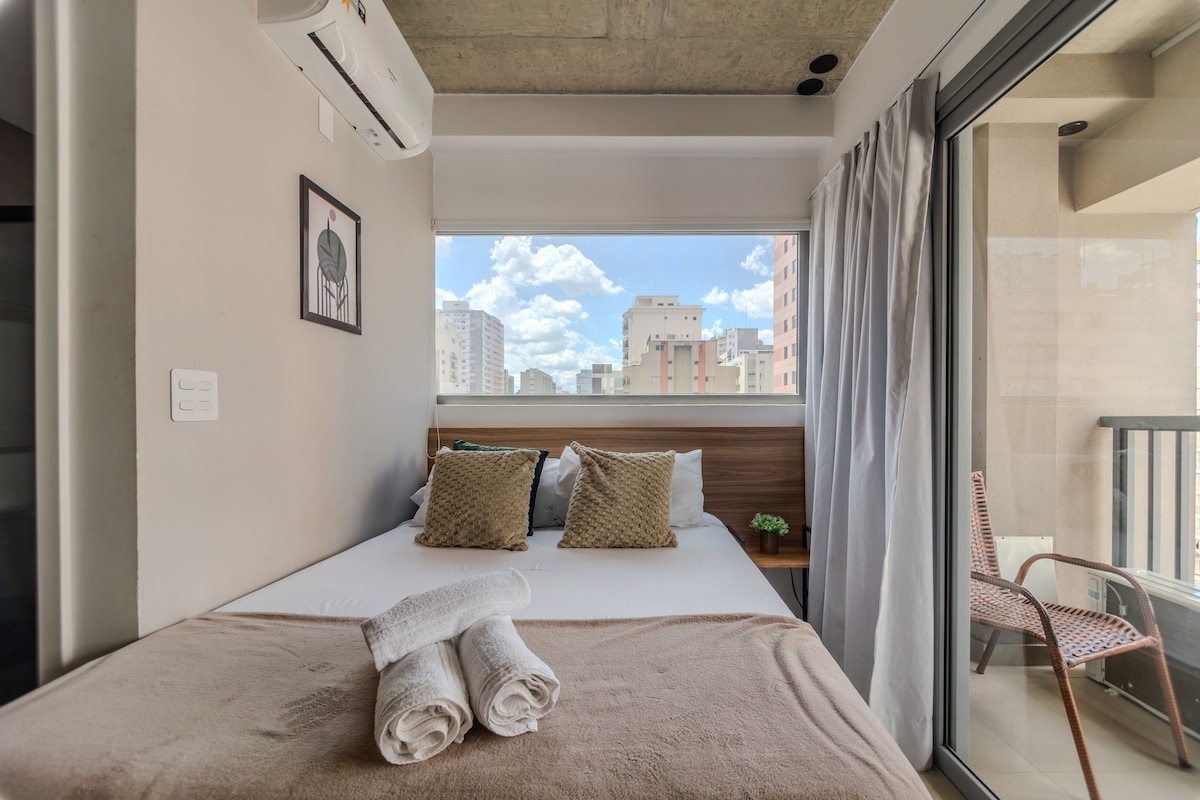 Một không gian độc đáo. Chúc bạn có một trải nghiệm Paulistana đích thực! Căn hộ 44m2, 1 phòng ngủ với giường đôi (cửa sổ chống ồn), phòng khách với TV 65p, Wifi, nhà bếp, căn hộ mới và được cải tạo, ban công, bãi đỗ xe miễn phí, gần một số trung tâm mua sắm, cửa hàng tiện lợi, nhà hàng tuyệt vời, trong khu phố thú vị và nổi tiếng nhất của São Paulo, gần Tàu điện ngầm (400 mét) , tầm nhìn đẹp ra Av Paulista. Chứa tối đa 3 người (1p trong giường sofa phòng khách). Quầy lễ tân 24 giờ.