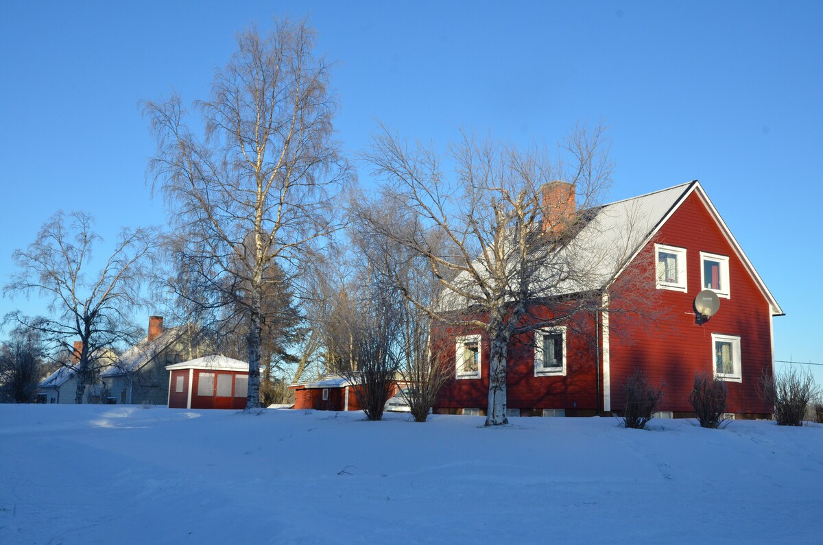 Ngôi nhà tách biệt có vị trí đẹp với tầm nhìn không bị cản trở ra hồ và ở rìa rừng. Nơi lý tưởng để thư giãn ở Bờ biển Höga. Cả các chuyến du ngoạn mùa hè và mùa đông, các tour du lịch husky hoặc xe trượt tuyết trong khu vực có thể đặt trước hoặc đi giày tuyết, trượt tuyết hoặc trượt tuyết xuyên quốc gia. Giá bao gồm 15 kWh và 20 lít gỗ mỗi ngày. Củi và điện bổ sung được tính theo giá thị trường bằng cách đặt cọc 100 euro.(Bây giờ: € 8/20 lít và € 0,25/kWh. Cách siêu thị 10 phút