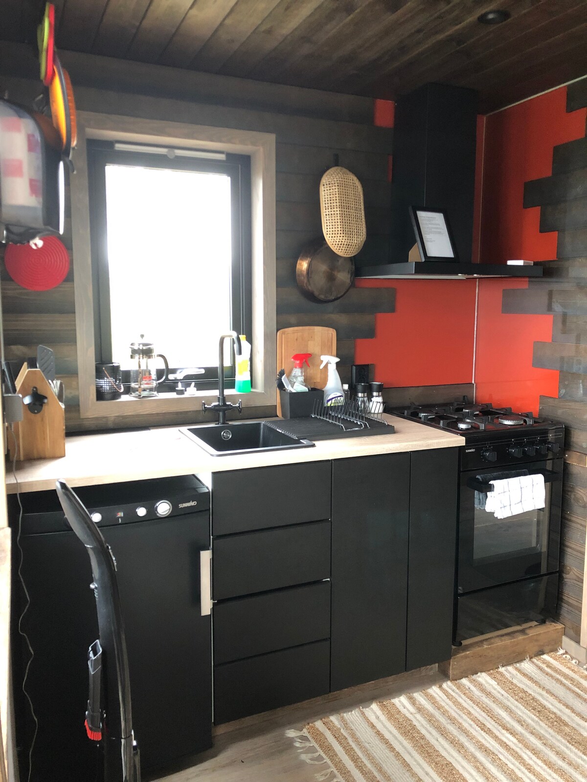 Cabin siêu nhỏ đã được hoàn thành vào tháng 8 năm 2023. Nó là 17,6 vuông. Trong phòng khách có 5 chỗ ngồi và một bàn rương có lưu trữ. Ghế sofa có thể được bật ra thành giường đôi. Chỗ ở nằm trong căn gác. Ở đó bạn đang ở dưới giếng trời và có thể chiêm ngưỡng bầu trời đầy sao và tầm nhìn ra biển nếu thời tiết diễn ra. Bếp được trang bị tủ lạnh, đĩa nóng, lò vi sóng và thiết bị nhà bếp cần thiết. Phòng tắm có nhà vệ sinh nước, bồn rửa với tủ gương và vòi sen.