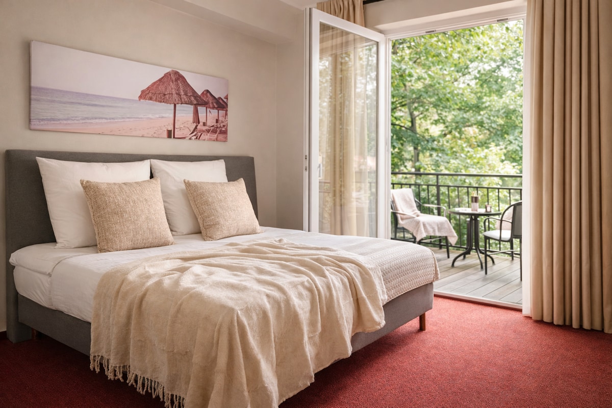 Căn hộ có vườn, giữa biển và hồ, ngay trung tâm khu bảo tồn thiên nhiên và rừng thông, cách bãi biển 3 phút đi bộ. Có sân thượng riêng, có mái che và rộng rãi, phòng khách với bếp nhỏ, phòng ngủ, phòng tắm, gara ngầm và phòng xe đạp được trang bị đầy đủ tiện nghi. Cửa sổ lớn cho phép thiên nhiên đi vào bên trong căn hộ, vì vậy bạn luôn hòa mình vào thiên nhiên. Trong khuôn viên của khu bất động sản - phòng xông hơi khô, hồ bơi, bể sục, phòng tập thể dục và khu vực spa (có tính phí).