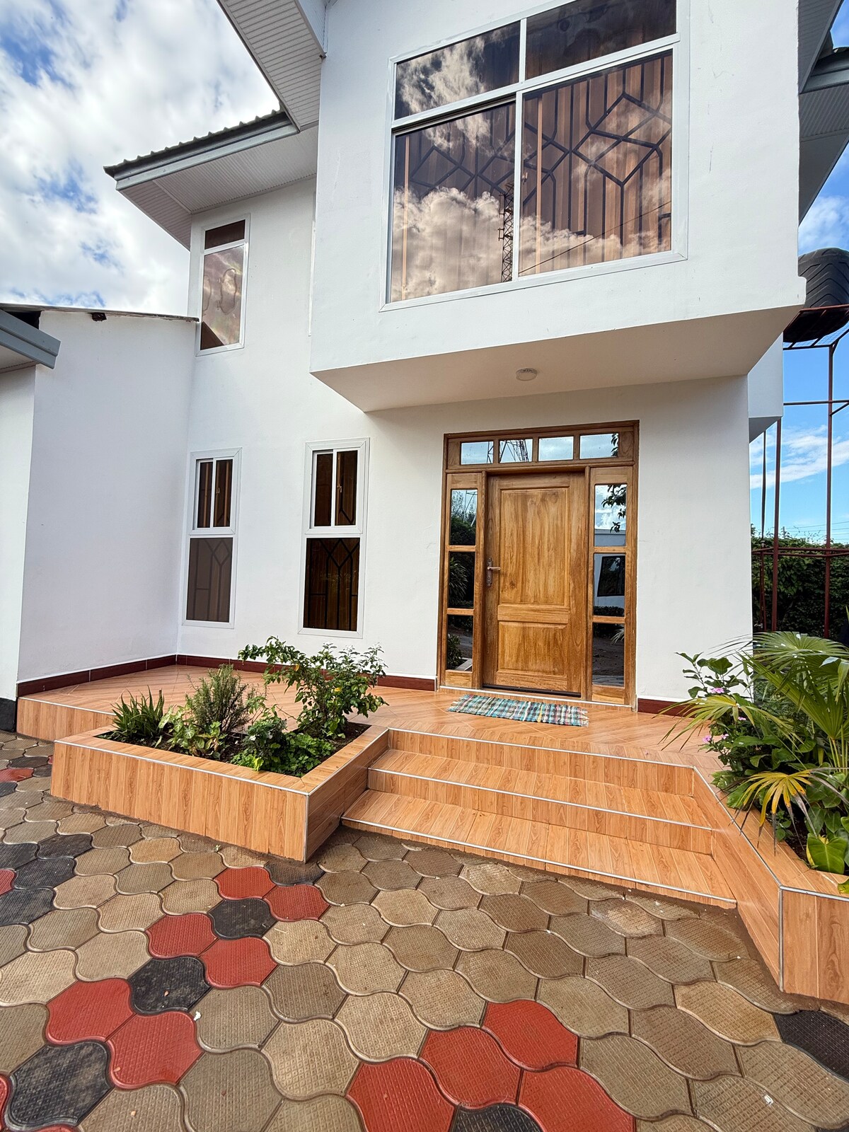 Một ngôi nhà yên bình trong khu phố yên tĩnh. Khu nhà có hàng rào an toàn với nhân viên bảo vệ, bãi đỗ xe miễn phí trong khu nhà. Hàng hiên có mái che để tận hưởng các khu vườn và khí hậu đẹp. Tầng trệt: hai phòng ngủ khép kín, phòng khách, nhà bếp với tiện nghi nấu ăn và tủ lạnh, cửa hàng và phòng tắm công cộng. Ở tầng 1 có thêm hai phòng và không gian mở lớn. Dễ dàng tiếp cận phương tiện giao thông công cộng. Quang cảnh đẹp trên núi Kilimanjaro.