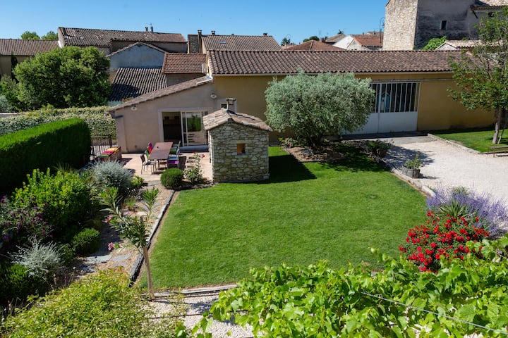 Tôi sẽ rất vui được chia sẻ với bạn lịch sử của ngôi nhà này, nó đã trở thành như ngày nay như thế nào. Chỗ ở này vẫn còn trong gia đình kể từ ông bà tôi, bố mẹ tôi sống ở đó, đó là trụ sở của trang trại của họ, tôi đã dành cả tuổi trẻ của mình ở đó. Vào những năm 2000, tôi quyết định chuẩn bị phần "nhà cỏ khô" nơi cỏ khô được lưu trữ cho con ngựa thời đó hoặc máy kéo chỉ mới bắt đầu, ở đây trong một vài dòng được sinh ra như thế nào đã trở thành nhà nghỉ dưỡng cho thuê của bạn. Trang trại và Vườn đã được cải tạo vào năm 2008 và được cải tạo để giữ cho diện mạo tự nhiên và nguyên bản của tòa nhà và Provence trong khi vẫn thoải mái, dễ sống và an toàn. Trang trại cũ này nằm trong một ngôi làng nhỏ giữa Avignon và Isle sur la Sorgue ở cổng Luberon.
