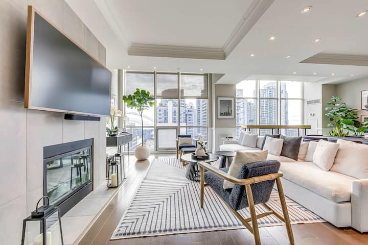 Nhìn ra Tháp CN và Trung tâm Rogers, căn penthouse sang trọng này xác định cuộc sống thành phố cao cấp.