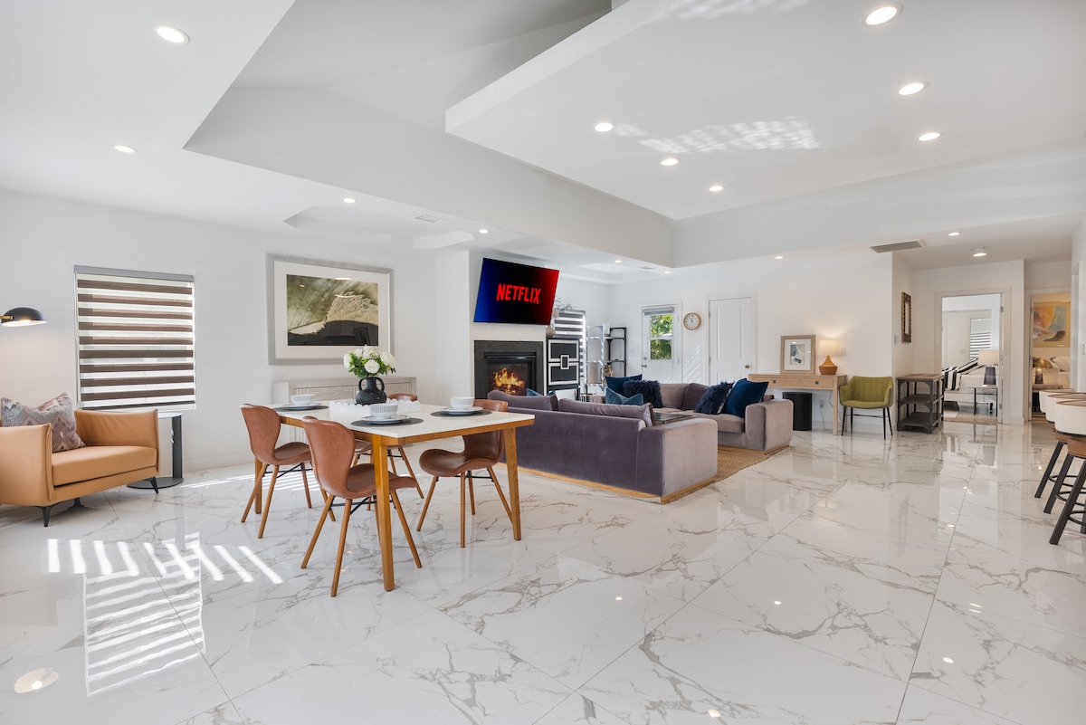 Thư giãn một ngày bận rộn với phòng khách theo phong cách rạp chiếu phim riêng của bạn. Nó được bố trí với máy chiếu phim 4K treo tường, ghế tựa thoải mái và ghế sofa để xem phim, trò chơi yêu thích của bạn hoặc TV trực tiếp. Toàn bộ ngôi nhà được trang bị công nghệ mới nhất như bộ sạc không dây, radio bluetooth và loa thông minh. Bungalow này nằm trong khu vực lịch sử, có thể tiếp cận thông qua con hẻm riêng phía sau và đi kèm với MỘT bãi đỗ xe riêng và có cổng, BẾP ĐẦY ĐỦ với máy rửa bát.