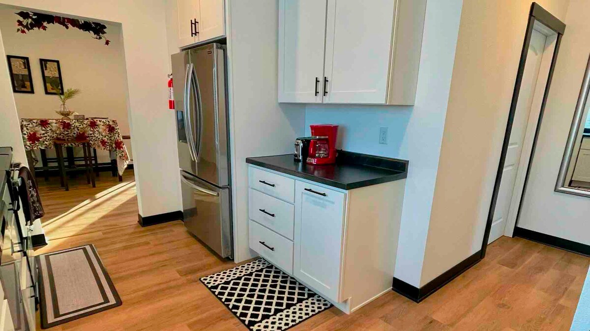 Chỉ cách thị trấn 10 phút, căn hộ tầng hầm rộng rãi này có lối đi riêng, bãi đỗ xe và lối vào không gian riêng của bạn. Nấu ăn rất đơn giản với nhiều lựa chọn các thiết bị nhỏ. Thư giãn trên ghế sofa với màn hình TV 65inch hoặc làm một số công việc từ khu vực văn phòng. Phòng tắm vòi sen không cửa ngăn, khu vực giặt ủi và 2 phòng ngủ riêng biệt với giường cỡ queen. Nơi nghỉ ngơi tuyệt vời thoát khỏi sự hối hả và nhộn nhịp của hoàng hôn và cuộc sống hoang dã. Phù hợp với gia đình. Một gia đình có người ở trên lầu, bạn có thể nghe thấy tiếng bước chân.