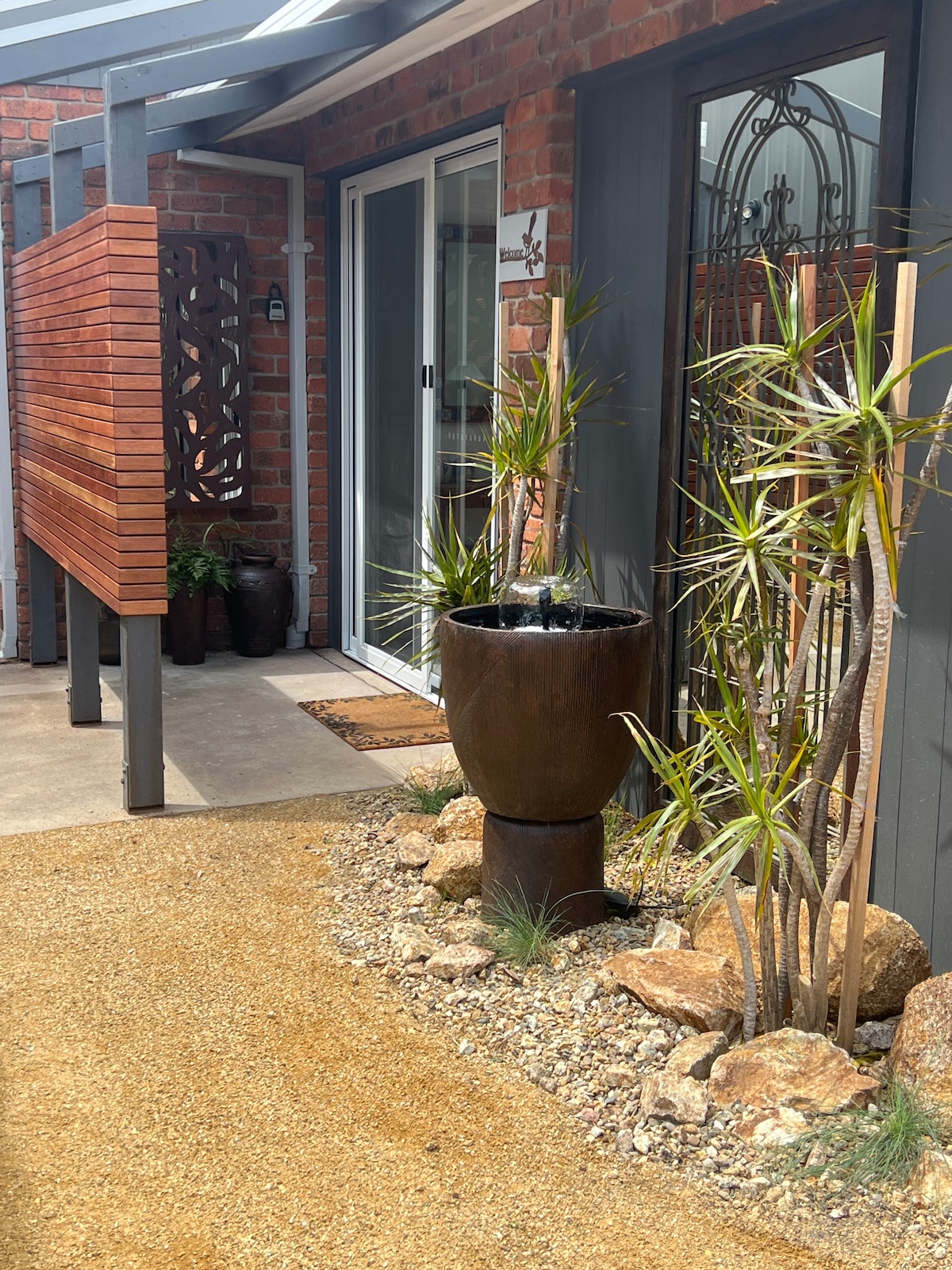 A private and peaceful retreat, positioned among lush gardens in the quiet area of Rye. Large windows in each room offer plenty of natural light and greenery. The place sleeps up to 4 people with modern bathroom, open plan living area and kitchenette with coffee and tea, washing machine, ducted air-conditioning and heating and complimentary Wifi. Less than 10-minute drive to the Peninsula Hot Springs and 20-minute walk to front beach (Tyrone Foreshore) or back beaches of Rye (Number 16 Beach).
