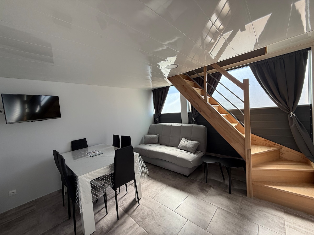 Căn hộ Duplex trong biệt thự mới 2 người + 1 trẻ em - 3 tuổi vườn riêng Khu phố đang được xây dựng Có thể có một số tiếng ồn trong tuần buổi tối và cuối tuần yên tĩnh cách các bãi biển Canet Ste Marie st Cyprien 5 phút đi xe hơi, cách LÀNG GIÁNG SINH BARCARES 15 phút Chỗ đỗ xe miễn phí Lối vào riêng - Bếp đầy đủ tiện nghi Phòng ngủ giường đôi cũi Nhà vệ sinh buồng tắm vòi sen TV điều hòa Wifi BÀN ghế ô Bếp nướng Điều kiện lấp lánh Chó NHỎ ok 👍 thuê a la journée tte l year tuần trong tháng 7/8