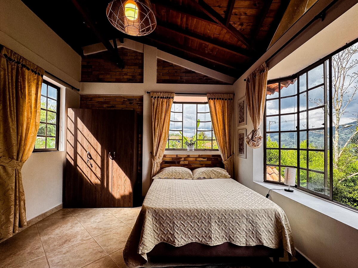 Tỉnh dậy với cảnh những đám mây trôi trên dãy núi Salento. Cabin của chúng tôi kết hợp thiết kế hiện đại với sự ấm áp của gỗ địa phương, mang đến cho bạn một không gian nghỉ dưỡng kính trong, nơi Cảnh quan văn hóa trồng cà phê là ngôi sao duy nhất. Từ giường của mình, bạn có thể ngắm sương mù bao phủ các đỉnh núi trong khi thưởng thức tách cà phê đầu tiên trong ngày. Không gian được thiết kế sao cho khung cảnh thiên nhiên của Quindío trở thành phông nền chính của bạn.