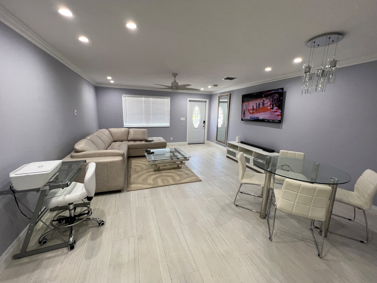 Chào mừng bạn đến với căn hộ studio được sửa sang lại hoàn toàn của chúng tôi! Đây là một nơi hoàn hảo cho một kỳ nghỉ thư giãn và thuận tiện ở Quận Palm Beach đầy nắng. Tận hưởng phòng tắm có vòi sen HydroJet và bếp đầy đủ tiện nghi với mọi thứ bạn cần để tự nhiên như ở nhà. Dễ dàng tiếp cận tất cả các điểm tham quan trong khu vực. Trong vòng vài phút, bạn có thể đến sân bay, bãi biển, nhà hàng, siêu thị, công viên và các đường cao tốc chính I-95 và FL Turnpike. Chúng tôi cung cấp thời gian nhận phòng 1 giờ chiều, giường cỡ queen, 1 chỗ đỗ xe