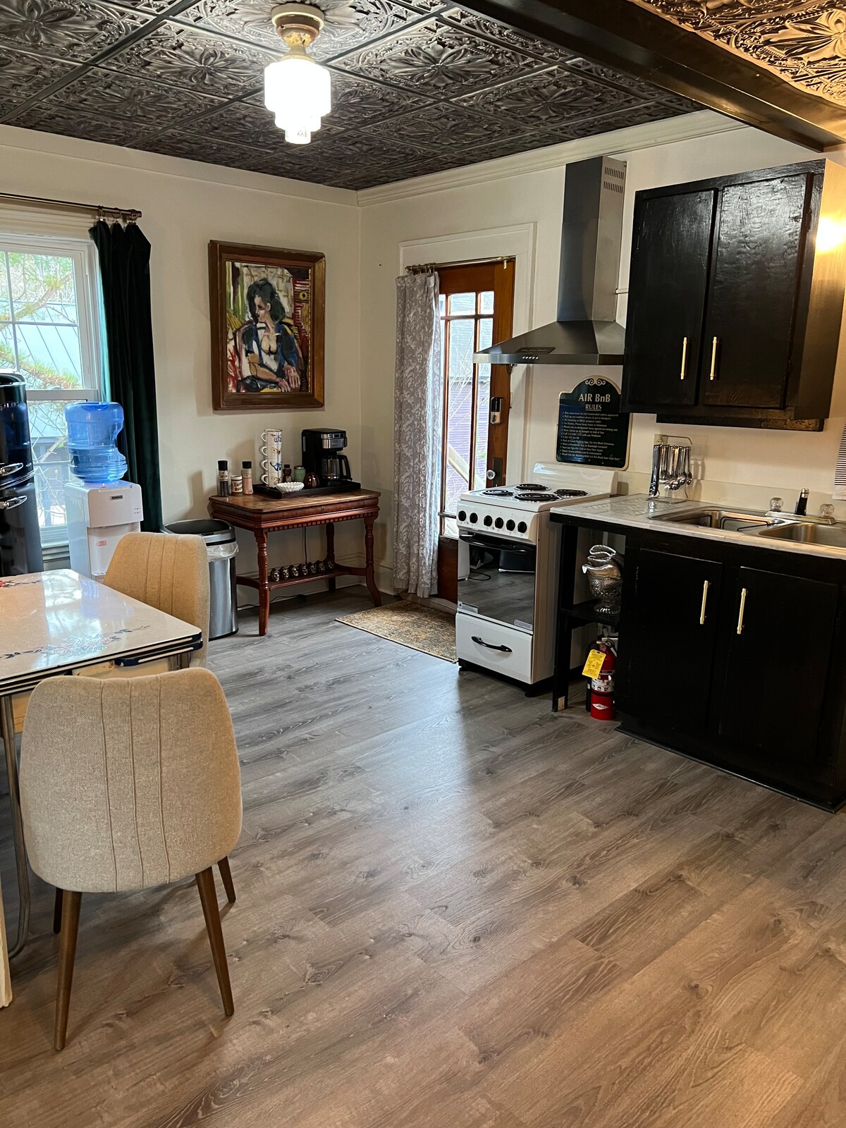 This boutique tiny home is situated in the picturesque Upper Valley of Vermont. The nearly 50 acres of private land is equal parts woods and water. You will wake to the mooing of dairy cows. Have your coffee on the porch while watching birds dive for their breakfast on the pond. Inside you will find every modern amenity. A fully appointed chef's kitchen. A living area filled with comfy furnishings and a cozy fireplace. Upstairs is a queen bedroom with an ensuite double showered bathroom. Heaven!
