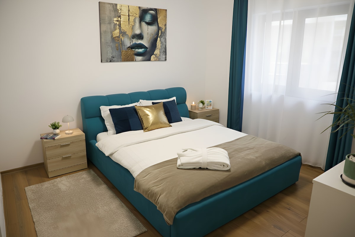 Căn hộ mới, sáng sủa trong thiết kế hiện đại và chỗ đỗ xe miễn phí. Nó được bố trí ở lối vào Timisoara, trong vùng lân cận của trạm xăng Esso. Căn hộ được trang bị: - tầng được trang bị đầy đủ các tiện nghi cần thiết: bếp điện, lò nướng, lò nướng, máy rửa chén, tủ lạnh, tủ lạnh, máy pha cà phê và đồ sành sứ. - Phòng không gian mở nơi khách có thể thưởng thức một bộ phim, trên ghế sofa thoải mái, trên TV thông minh, trên TV thông minh - Phòng ngủ với giường cỡ king -beam có buồng tắm vòi sen và máy giặt có máy sấy.