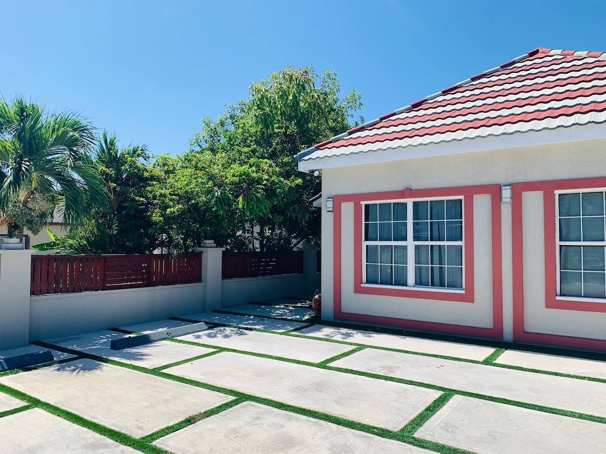 Một studio lớn đáng yêu 5 phút đi bộ ra biển và lặn hoặc ăn uống tại Cobalt Coast, Nova. Chỗ ở studio là một sơ đồ mặt bằng mở. 15 phút đi bộ đến Bãi biển Boatswains, Turtle Farm và Nhà hàng. Có lối vào riêng, bãi đỗ xe cho một chiếc xe nhỏ (nếu đó là một chiếc xe cỡ trung bình, bạn sẽ được yêu cầu đỗ xe đối diện cổng). Siêu sạch sẽ, với nội thất đáng yêu. Ngôi nhà gần đây đã được xây dựng và được bảo trì tốt. 10 phút lái xe đến Bãi biển 7 Mile. Bãi biển Barkers là nơi tuyệt vời để lướt ván diều và cũng gần đó