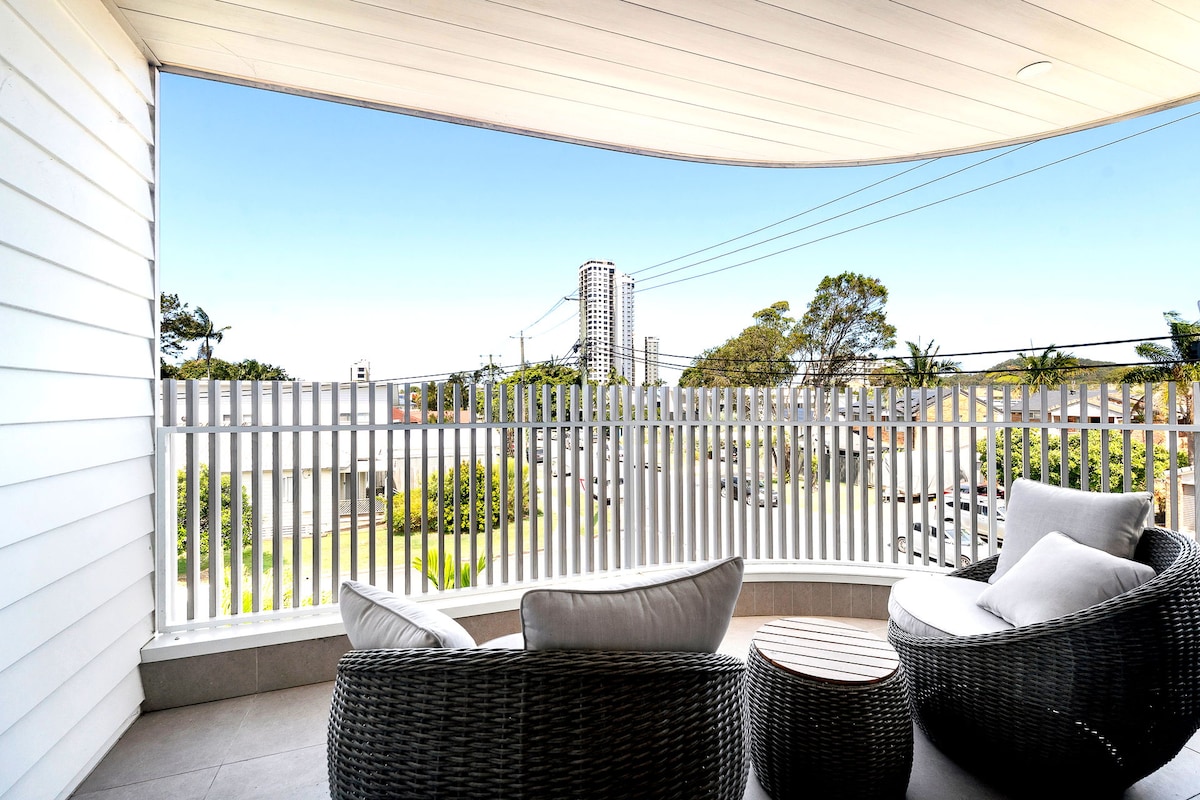 Thư giãn tại biệt thự Palm Beach 3 giường, 2 phòng tắm lấy cảm hứng từ lướt sóng này. Tận hưởng phòng tắm khép kín cỡ king, hai phòng queen, phòng khách không gian mở và hiên vườn nhiệt đới hoàn hảo cho BBQ. Đi bộ đến bãi biển, điểm lướt sóng, quán cà phê, quán bar và nhà hàng hàng đầu như Balboa, Costa Taco và The Collective. Sân bay chỉ cách 12 phút. Kỳ nghỉ ven biển dễ dàng đang chờ bạn.