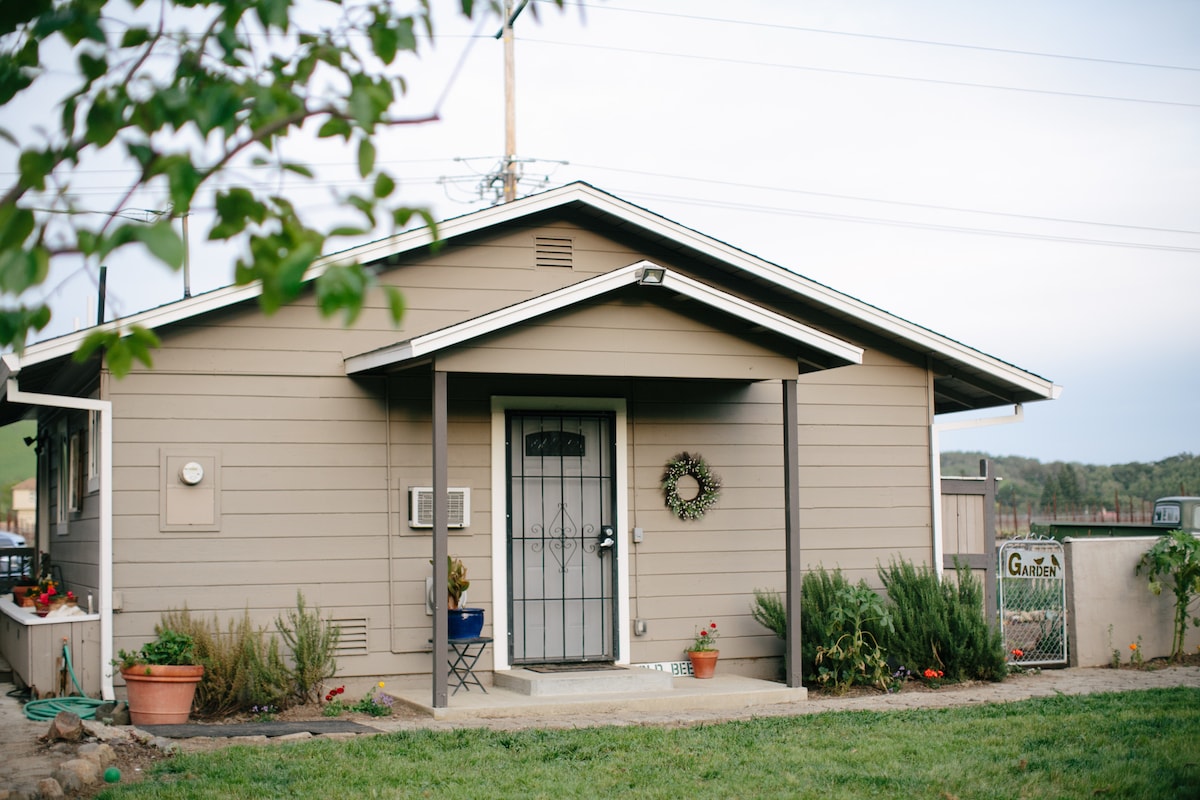 Tận hưởng kỳ nghỉ của bạn tại Thung lũng Dry Creek xinh đẹp, một khung cảnh nông thôn đồng quê được bao quanh bởi những vườn nho và nhà máy rượu vang địa phương, cách quảng trường cổ kính lịch sử của Healdsburg vài phút. Nhà nghỉ thôn dã rộng 480 feet vuông với cửa sổ lớn, trần nhà cao và lối vào riêng. Có bãi đỗ xe ngay trước nhà. Nó có các tiện nghi nhà bếp (ấm cà phê và trà, tủ lạnh mini, máy nướng bánh mì và lò vi sóng), phòng khách và phòng tắm với vòi sen lát gạch mosaic. Ngay bên kia đường, bạn có thể đi dạo hoặc chạy bộ dọc theo những vườn nho hoặc thuê xe đạp để khám phá vẻ đẹp của thung lũng. Nếu bạn thích đi bộ đường dài, chèo thuyền kayak theo mùa hoặc đi xuồng, xung quanh chúng ta cũng có những cơ hội để khám phá. Chỗ ở của chúng tôi có nhiều cây ăn quả và chúng tôi sẽ vui vẻ chia sẻ bất cứ thứ gì có trong mùa khi bạn đến. Nước ở đây cũng sạch sẽ cho vào mùa xuân và rất ngon và bầu trời vào ban đêm đầy sao! Bạn có thể ngồi ở sân trước được bao quanh bởi hàng chục cây gỗ đỏ hoặc bạn có thể đi dã ngoại trong sân sau lớn của chúng tôi giữa các cây ăn quả. Chúng tôi cũng có 2 con chó cái khá thân thiện nếu bạn muốn gặp chúng. Chúng tôi rất vui được chào đón bạn đến với Quận Sonoma và đảm bảo rằng thời gian lưu trú của bạn ở đây thú vị.