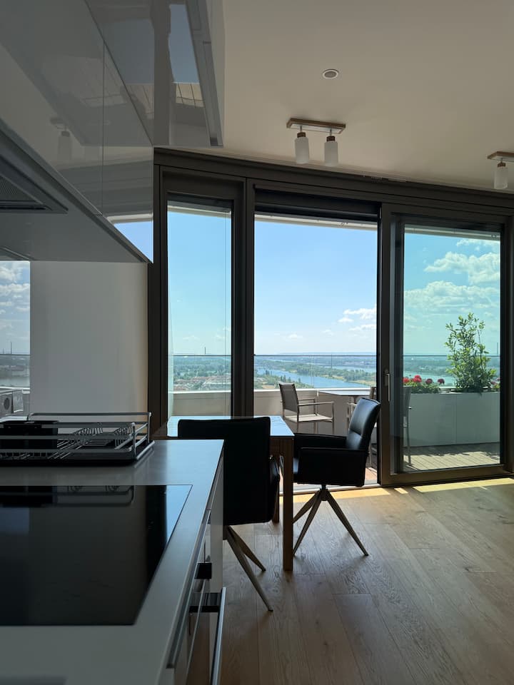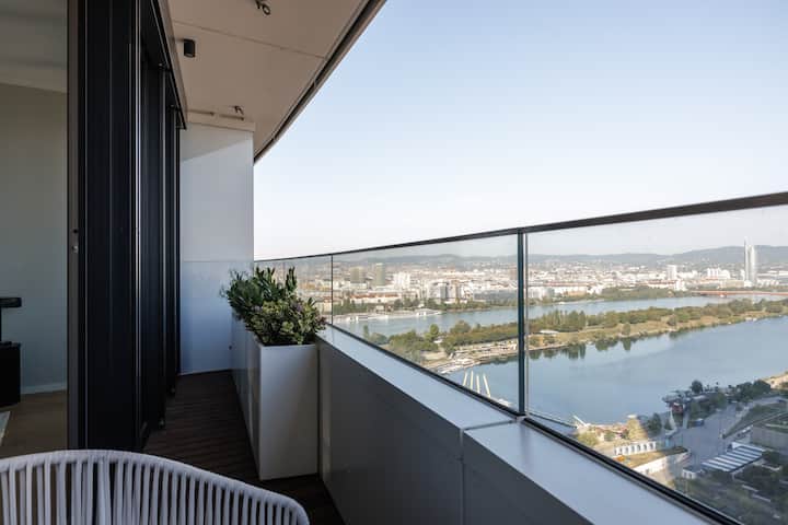 Căn hộ hiện đại với đường chân trời và tầm nhìn ra sông Danube