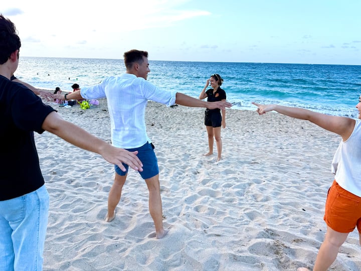 Lớp học nhảy salsa trên bãi biển lúc hoàng hôn