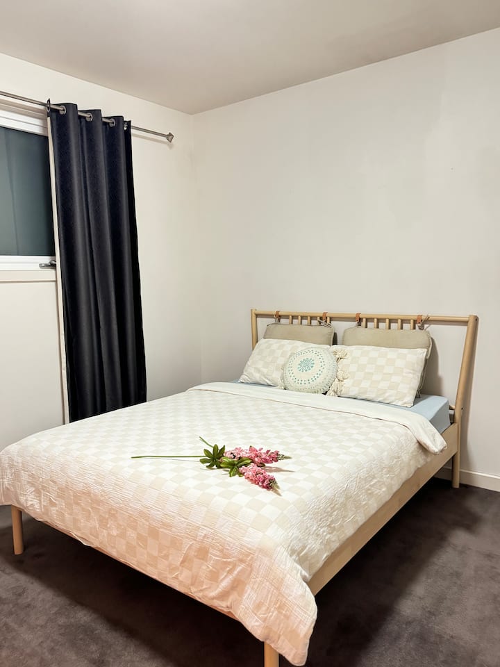 Giường đôi yên tĩnh với phòng tắm riêng và điều hòa nhiệt độ.