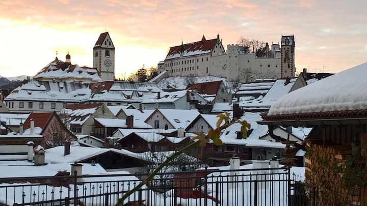 Căn hộ ấm cúng, tầm nhìn ra lâu đài, gần Forggensee