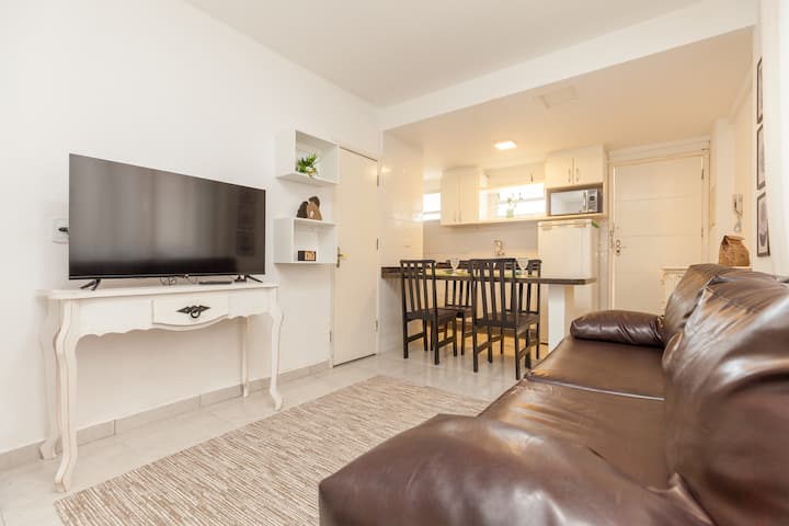 Căn hộ cách biển 100 m ở Caiobá, 1 phòng suite, TV thông minh và Wi-Fi