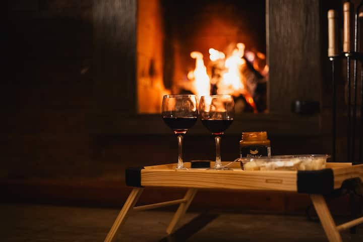 Nhà gỗ chalet có hai thủy điện, võng treo lơ lửng và bữa sáng