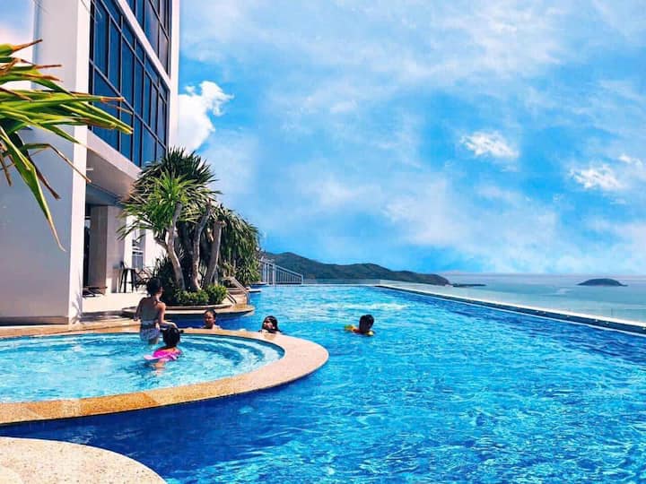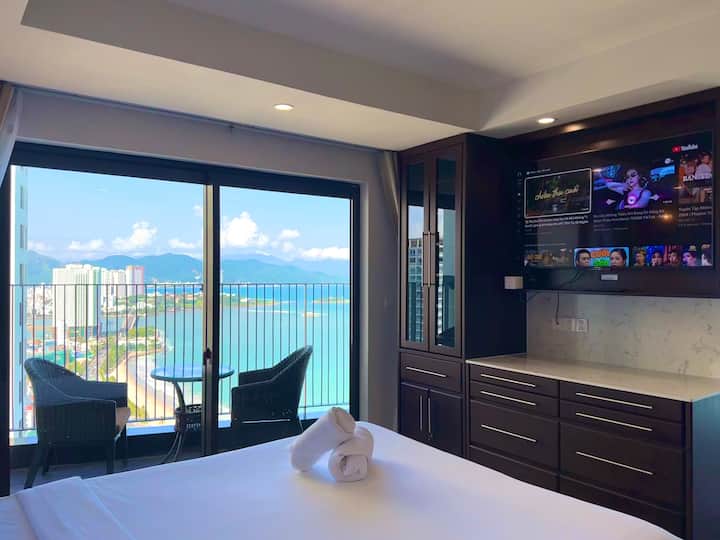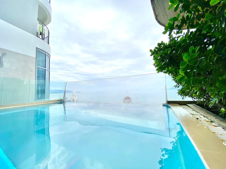 Seaview Luxury Suite với bồn tắm, trung tâm, hồ bơi và phòng ngủ