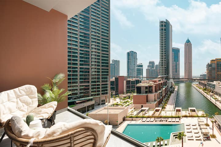 Studio sang trọng | Tầm nhìn ra kênh đào | Hồ bơi, Phòng tập thể dục và Ban công