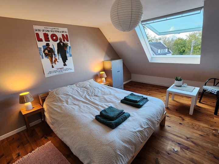 Phòng sáng dưới mái nhà nhìn ra vịnh