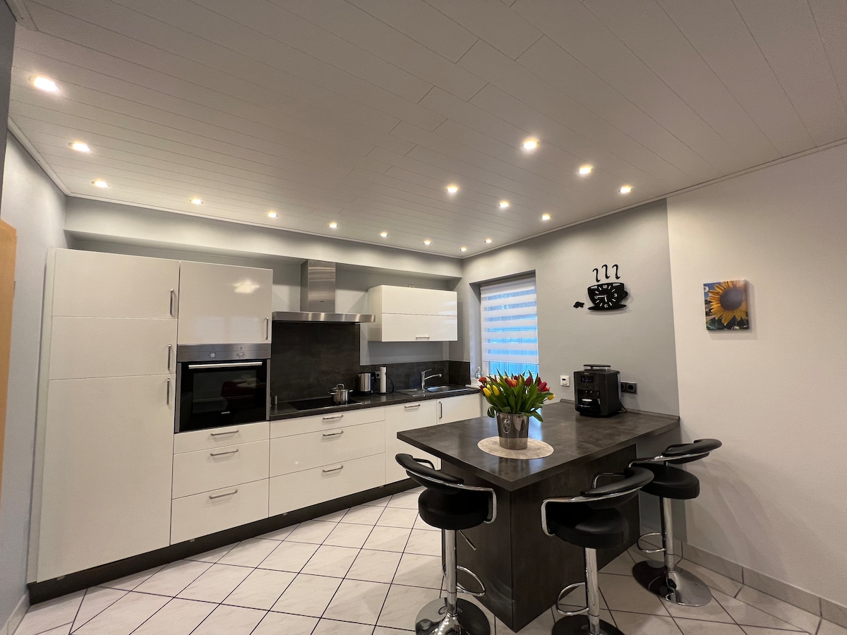 Căn hộ 62 m² yên tĩnh gần Căn cứ Hoa Kỳ Baumholder với hai phòng ngủ, phòng khách, nhà bếp đầy đủ tiện nghi và phòng tắm không rào chắn. Ban công để uống cà phê buổi sáng, vườn riêng với vỉ nướng cũng như Wi-Fi nhanh và bãi đỗ xe tại nhà. Lý tưởng cho người Mỹ, khách TDY, khách đi công tác và gia đình. Mua sắm, nhà hàng và thiên nhiên cách đó vài phút – ngôi nhà tạm thời thoải mái của bạn.