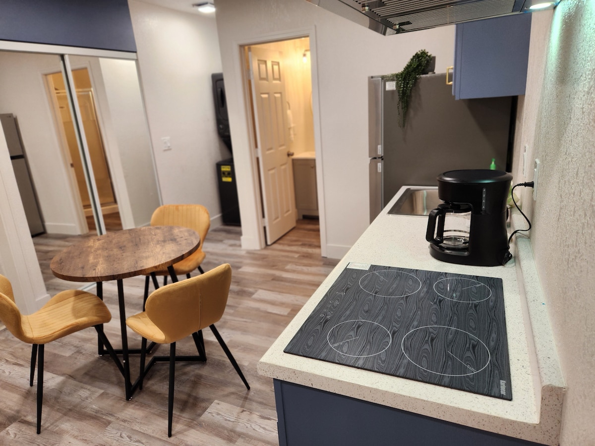 This spacious studio guesthouse is perfect for longer solo trips or short group stays. It’s privately tucked away in the back of our lot with its own private outdoor area. Our space is located just minutes from Downtown and West Sacramento with easy access to both the freeway and light rail. Also very close to both Land Park and Curtis Park. No assigned parking but free street parking is available 24/7, no permit necessary.