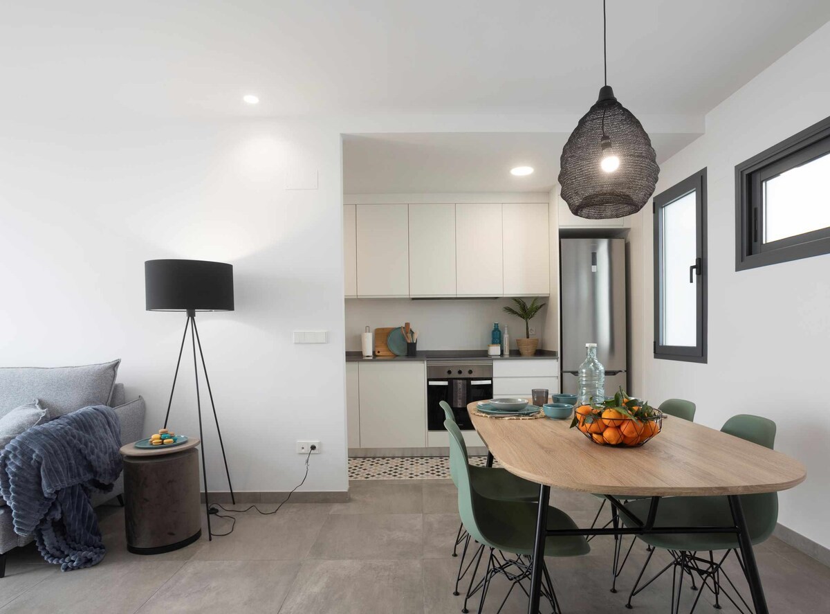 Elegant apartment, renovated in 2025, located in the historic heart of Gandia. Terrace with open views facing the Serpis River. The sea line is visible on the horizon. A comfortable, bright, and well-equipped space – perfect for relaxing after exploring the city. Just steps from Passeig Germanies, the Ducal Palace, and Plaza del Prado, with all services nearby. Train station 8 minutes away, and beaches like Gandia or Daimús just a few minutes' drive. Free private parking less than 200 m away.