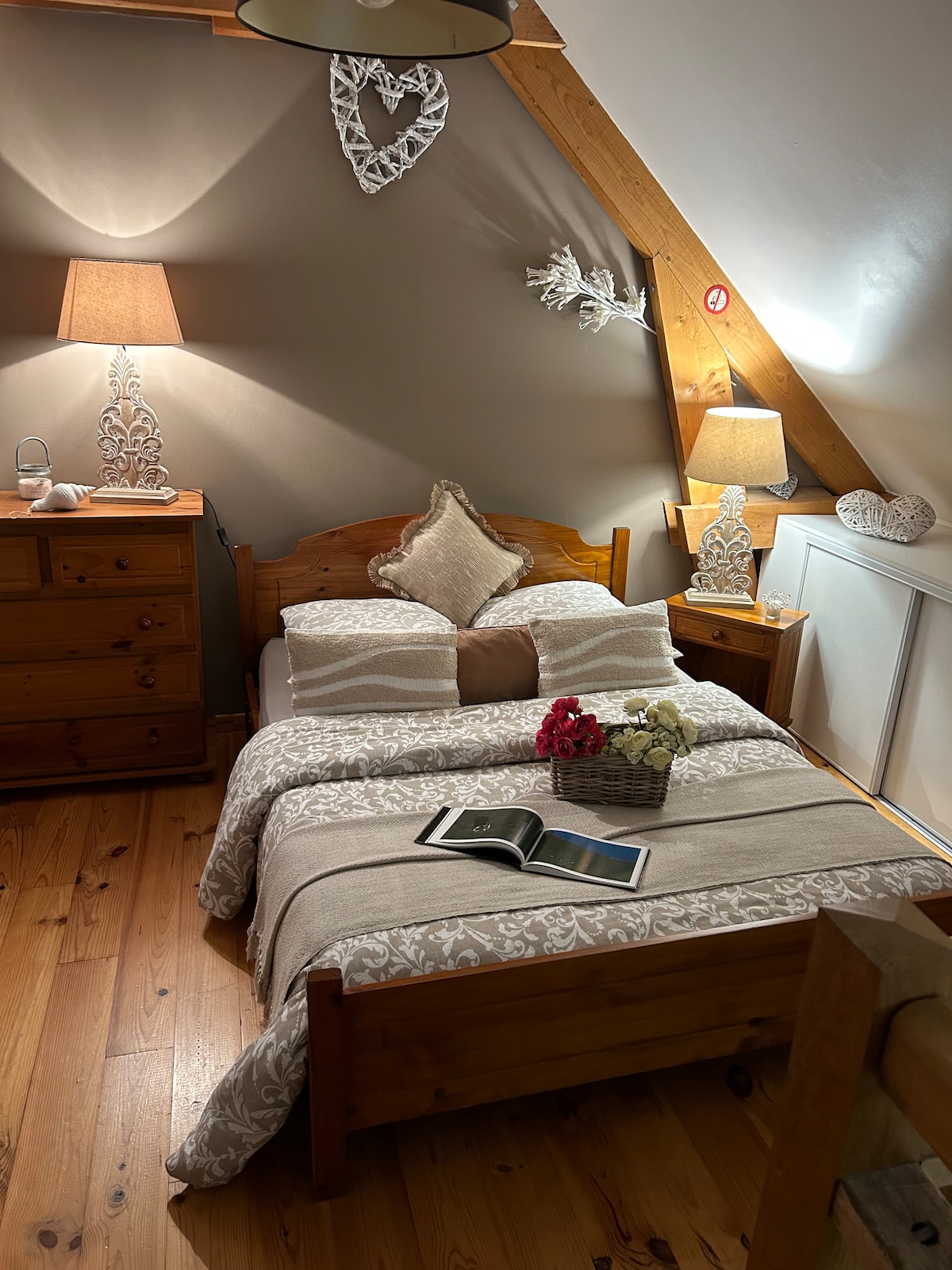 Nằm trong khung cảnh xanh tươi, chỗ ở theo phong cách gác lửng của chúng tôi cung cấp cho bạn vị trí lý tưởng để khám phá Honfleur (9 km) và Côte Fleurie. Để chào đón bạn, chúng tôi đã sắp xếp tầng của nhà chúng tôi với lối vào riêng. *Xin lưu ý rằng vì cầu thang không an toàn, rất tiếc, chúng tôi không thể cung cấp chỗ ở cho trẻ em hoặc em bé. Bạn có thể sử dụng một khu vực ngoài trời trong vườn của chúng tôi với BBQ, bàn, ghế và ô. Chỗ ở được trang bị điều hòa không khí di động.
