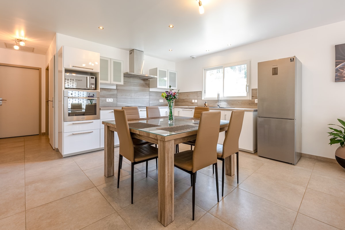 Biệt thự, gần đây xây dựng 94 m², vị trí rất tốt, tầm nhìn không bị cản trở và ngoạn mục của thiên nhiên, trong một khu dân cư yên tĩnh. Biệt thự máy lạnh, bao gồm: - 3 phòng ngủ - Phòng khách lớn 40 m²: nhà bếp đầy đủ tiện nghi, khu vực sảnh chờ có TV - Phòng tắm (vòi sen + bồn rửa) Phòng khách lớn mở ra sân thượng rộng 20 m2 hướng về phía nam