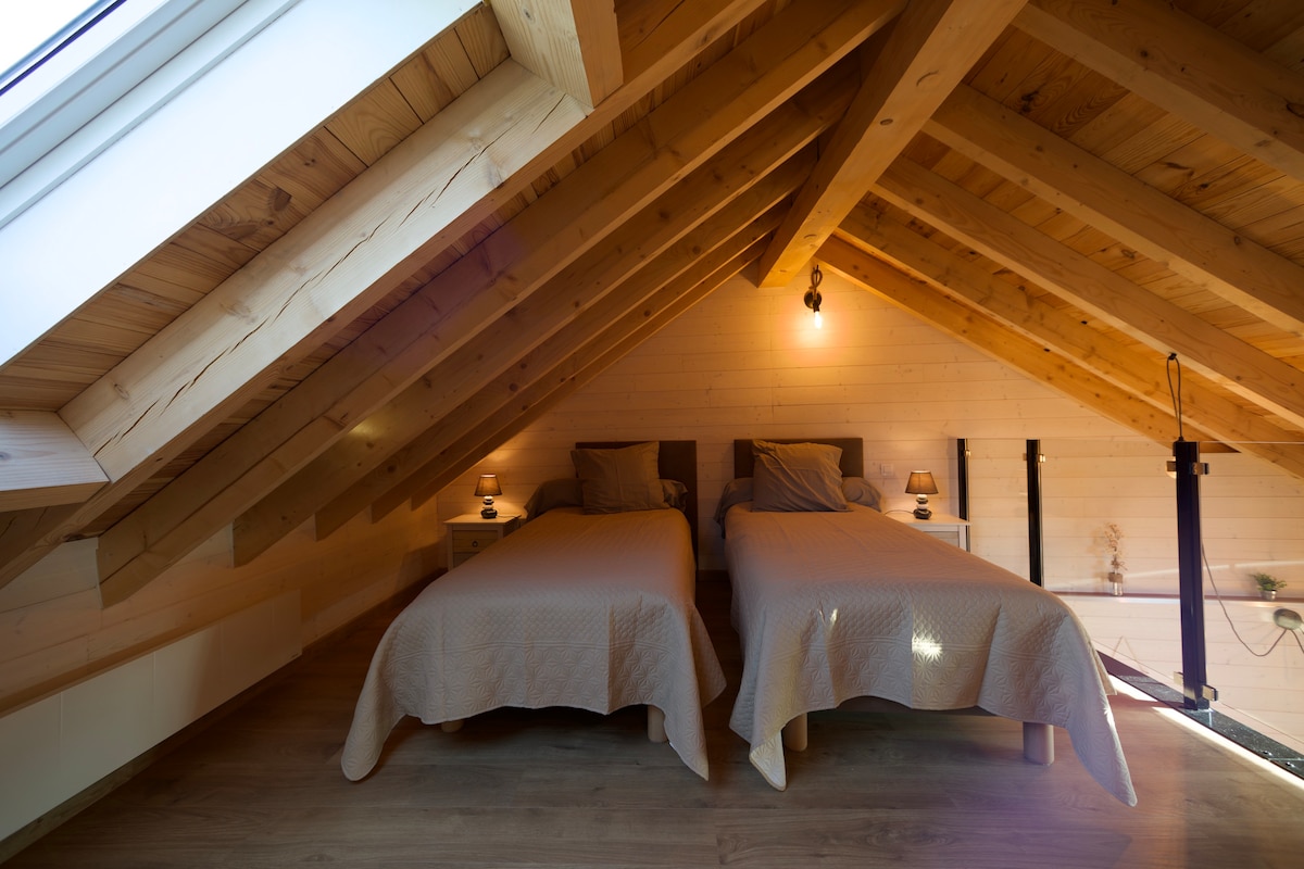 Ngôi nhà gỗ hiện đại ấm áp và mái nhà xanh này bao gồm 2 phòng ngủ, một phòng khách lớn với phòng khách, phòng ăn và nhà bếp đầy đủ tiện nghi, phòng tắm (vòi sen và bồn rửa đôi) ,nhà vệ sinh độc lập với phòng giặt ủi và nhà để xe. Ở bên ngoài, bạn sẽ được tận hưởng một khu vườn, ban công và sân thượng đầy đủ tiện nghi. Trang trí pha trộn phong cách đương đại và tính xác thực sẽ khiến bạn đắm chìm trong một bầu không khí ấm cúng, nơi cuộc sống tốt đẹp.