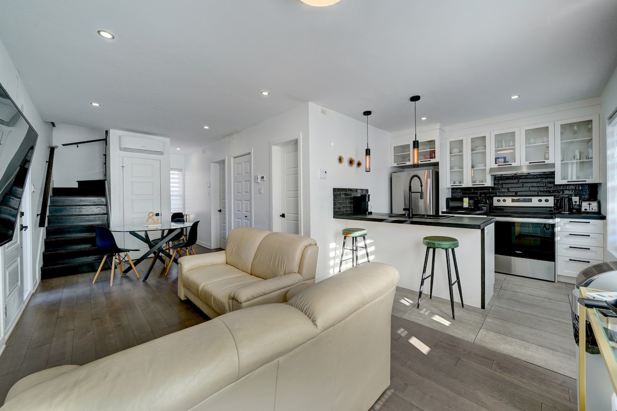 Chào mừng bạn đến với ngôi nhà hiện đại và thoải mái của bạn tại Montreal. Căn hộ 2 phòng ngủ được thiết kế tỉ mỉ này mang đến sự cân bằng hoàn hảo giữa phong cách, sự thoải mái và tiện lợi. Với nội thất sáng sủa, vật liệu hoàn thiện chất lượng và tất cả các tiện nghi thiết yếu, đây là lựa chọn lý tưởng cho khách đi công tác, gia đình hoặc những khách muốn có một kỳ nghỉ suôn sẻ và thú vị. Cho dù bạn đến đây vì công việc hay giải trí, căn hộ này mang đến một không gian yên tĩnh và thân thiện để thư giãn sau một ngày khám phá thành phố.