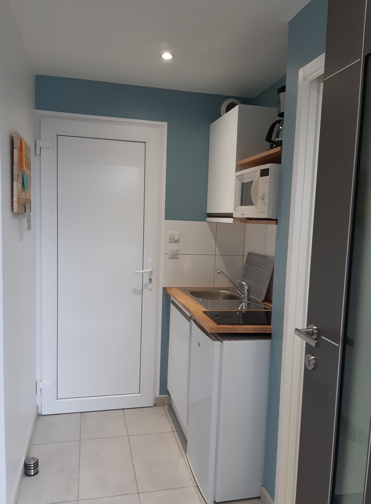 Chỗ ở nằm trong một biệt thự lớn, hoàn toàn độc lập, được bao quanh bởi thiên nhiên và cách các con đường chính 2 bước. Diện tích bề mặt 70 m2. Trên sàn vườn, có sân thượng có mái che và bóng râm, và lối dẫn thẳng đến hồ bơi không có sưởi. Thành phần: Một phòng khách lớn với cửa sổ nhìn ra vịnh (khu vực tiếp khách và bếp mở) Góc phòng chờ: TV, sofa giường, ghế bành Bếp đầy đủ tiện nghi (tủ lạnh, tủ đông, tủ đông, máy rửa chén, lò nướng Một phòng ngủ: bộ đồ giường chất lượng, phòng thay đồ Phòng tắm/nhà vệ sinh