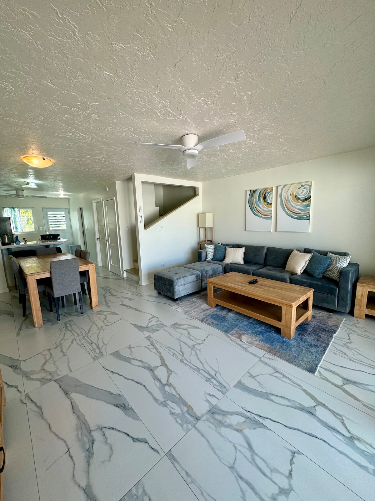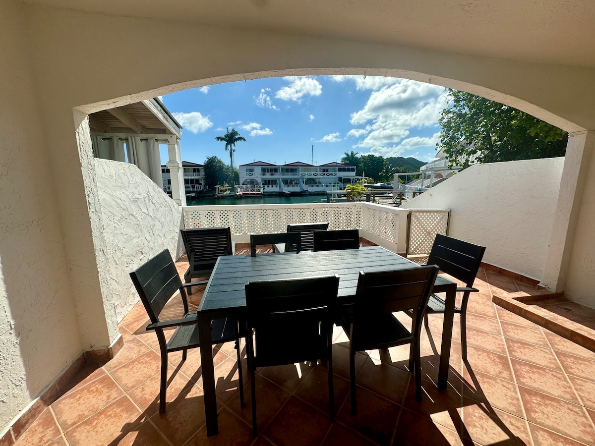 Townhome với 2 phòng ngủ, 2 phòng tắm đầy đủ và 1 phòng vệ sinh cơ bản, diện tích 1200 feet vuông (111 m2). Nước hướng ra boong riêng và 2 ban công với tầm nhìn ra hoàng hôn phía Tây. Nhà bếp đầy đủ tiện nghi. Bãi đỗ xe riêng tại chỗ cho ô tô nhỏ hơn; bãi đỗ xe cho các phương tiện lớn hơn cách đó vài bước. Cộng đồng có cổng với các nhà hàng, quán bar và quán cà phê, sân golf, bến cảng, siêu thị, ngân hàng và đại lý cho thuê xe. 10 phút đi bộ đến North Beach và sân golf, 20 phút đi bộ đến nhà hàng, cửa hàng, các tiện nghi khác.