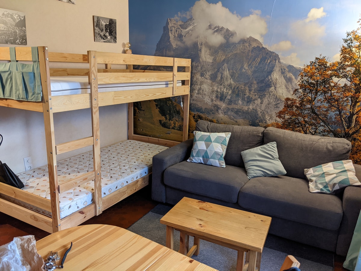 Tôi thuê phần trên của nhà gỗ chalet của mình (tự xây dựng và sinh thái) với không gian ngoài trời ở phía trước, nằm trong một phân khu gồm hàng chục ngôi nhà ở cuối làng. Một phòng ngủ (140 giường) ở tầng vườn và một phòng khác (140 giường) ở tầng trên. Thiết bị đơn giản, không có lò vi sóng hoặc máy rửa bát.