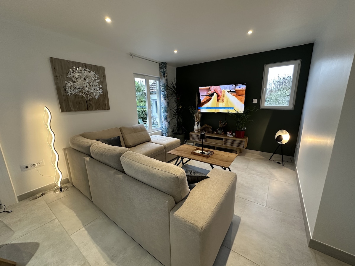 40 m2 chỗ ở F2 liền kề nhà chúng tôi, lối vào độc lập, chỗ đỗ xe trong sân đóng bằng cổng tự động. Tất cả các tiện nghi đều có thể đi bộ. - Phòng tắm có vòi sen, bồn rửa và bồn cầu - Phòng khách có bếp được trang bị (bếp, tủ lạnh, lò vi sóng, lò nướng, bát đĩa...) và sofa giường cho 2 người - Phòng ngủ độc lập với giường đôi, tủ quần áo/tủ quần áo và TV (có thể chuyển đến phòng khách) + cũi trẻ em theo yêu cầu. Không có hộp khóa an toàn.