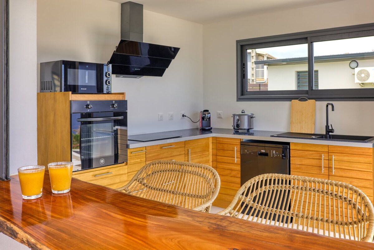 T2 55 m2 hiện đại, có sân thượng riêng, nơi bạn có thể chiêm ngưỡng phong cảnh của hòn đảo dữ dội với tầm nhìn 180 ° C (dãy núi, núi lửa, đại dương...) Tận hưởng sự yên tĩnh tuyệt vời của Tapage. Bạn sẽ bị quyến rũ bởi jaccuzi lớn của nó, nơi bạn có thể thư giãn sau khi đi bộ đường dài hoặc đắm mình trong các vì sao! Căn hộ hoàn toàn độc lập ở tầng 1 của nhà chúng tôi. Khả năng đỗ xe trước nhà.