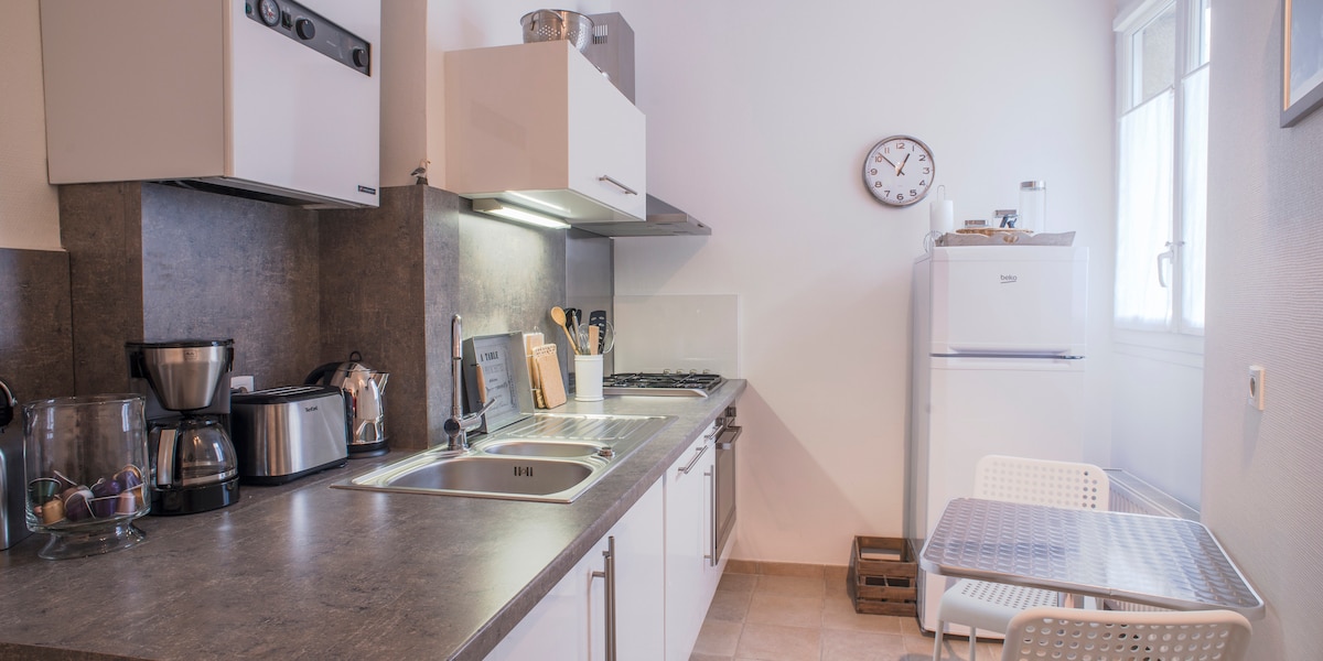 Chỉ cách bãi biển và các bức tường thành phố vài bước chân, căn hộ thông tầng ấm cúng và sáng sủa này là một nơi nghỉ ngơi lý tưởng cho hai người. Bạn sẽ phải leo 4 tầng cầu thang nhưng tầm nhìn đáng để nỗ lực ! Bãi biển, nhà hàng, mua sắm... chỉ cần đỗ xe và thích làm MỌI THỨ bằng cách đi bộ. Bạn thậm chí có thể chỉ cần đi tàu vì nhà ga chỉ cách đó một đoạn đi bộ ngắn (20 phút) hoặc sử dụng phương tiện giao thông công cộng Tận hưởng tối đa thời gian trong ngày của bạn và tận hưởng hoàng hôn khi bạn quay lại !