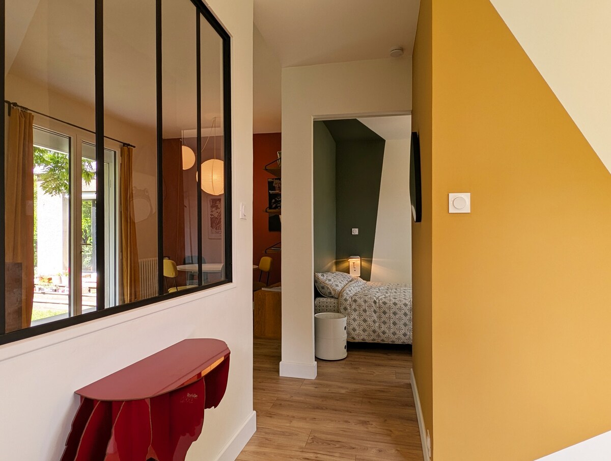 Nhà nghỉ thôn dã được trang bị nội thất quyến rũ, yên bình và sáng sủa, nằm ở tầng vườn. Lý tưởng để ngắt kết nối hoàn toàn, không có Wifi hoặc TV. 1 phòng ngủ giường đôi. 1 phòng khách có giường sofa, bếp được trang bị 1 phòng tắm 44m2 Máy lạnh. Có thể ăn sáng và/hoặc ăn trưa. Grenobloise Crown, các tiện nghi gần đó. Cách giao thông công cộng 5 phút. 15 euro cho ga trải giường 2 người