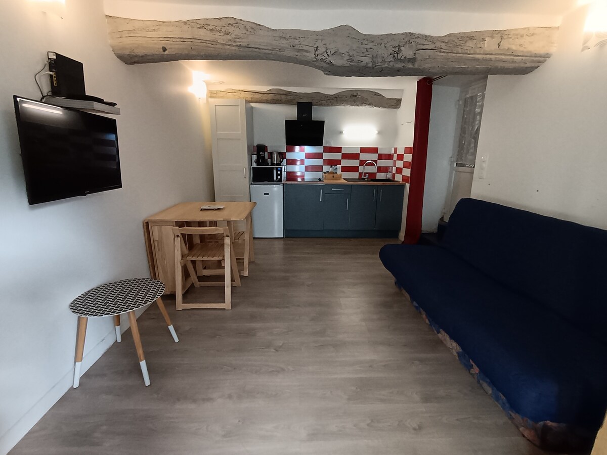 We are located in rural Normandy, France, 500m from a small village. Our home consists of an original house and attached larger house. We live in the larger house and it is the original house which is the accommodation offered here. The accommodation has its own entrance and is separated from our house by thick stone walls. There is a living room at ground level with a corner kitchen and upstairs is a bedroom with en-suite bathroom. It is a very quiet location.