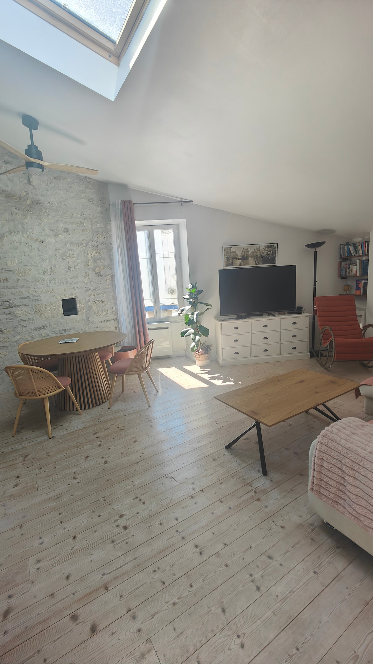 Durant l'éte, je vous propose ma résidence principale. Située à deux pas du marché de St Pierre d'Oléron, vous pourrez profiter de toutes les commodités à pieds ou à vélos. Composé d'un grand salon et d'une cuisine ouverte, vous trouverez également deux chambres, dont une sous les toits. Chacune avec son dressing. La salle de douche est petite mais sa douche spacieuse vous fera oublier ce détail. Une petite cours commune vous permettra de stocker vos vélos pour laisser la voiture sur le parking.